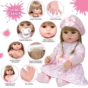 Tags: Boneca, Bebe, Reborn, Realista, Menina, Infantil, Silicone, Princesa, Linda, Morena, Loira, Fofa, Banho, Enxoval, Completo, Grande, Baby Alive.