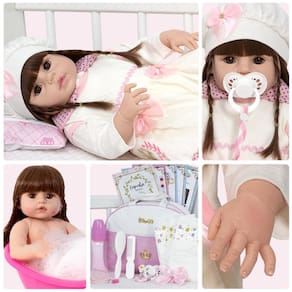 A nossa empresa tem a missão de garantir a total satisfação de seus clientes, onde a qualidade e o atendimento excepcional são nossa prioridade Estamos muito felizes em apresentar a Boneca Bebê Reborn para você, um item cuidadosamente selecionado para atender às suas necessidades. Compre agora e experimente a diferença em comprar com a nossa loja.A Boneca Bebê Reborn é o sonho das meninas Produzida 100% em vinil siliconado, essa boneca pode sentar, deitar e fazer tudo que a sua imaginação deixar. Com seus olhos castanhos e detalhes realistas ela é encantadora e apaixonante. Sua criança merece a melhor qualidade de bebê reborn Marca: Cegonha Reborn DollsModelo: Boneca Bebê Reborn Cor: BegeMaterial: Vinil Siliconado AtóxicoCaracterísticas Principais: Membros Articulados, Corpo de Silicone, Detalhes Realistas.Medidas Aprox.: Altura da Boneca: 52cm Peso Aprox. Da Boneca: 0,745 Kg Certificado INMETRO Recomendado para crianças maiores de 03 anosConteúdo:1 Bebê Reborn Cabeça, Membros e Corpo de Vinil 1 Conjunto de Roupa Luxo1 Par de Cílios1 Par de Brinco1 Chupeta 1 Mamadeira Simples5 Certificados3 Fraldas1 Laço Cetim2 Presilhinha1 Par de Luvas1 Bolsa Maternidade1 Prendedor de ChupetaKit Pente e Escova SimplesGarantia30 dias de garantia oferecida pelo fabricante.Dúvidas Frequentes:1. Ela acompanha ItensR. Sim, todos os itens da descrição.2. Ela emite algum somR. Não, ela não emite nenhum som.3. Pode dar banho na bonecaR. Sim, pois o material do corpo é de Silicone.4. Pode escolher a cor dos olhos da bonecaR. Não, os olhos já vêm de fábrica.Tags: Boneca, Bebe, Reborn, Realista, Menina, Infantil, Silicone, Princesa, Linda, Morena, Loira, Fofa, Banho, Enxoval, Completo, Grande, Baby Alive.Homologação Inmetro: IP-BRI-0261/2022-05