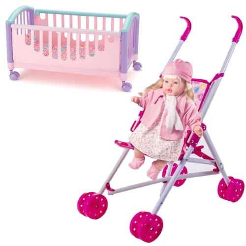 Conteúdo da embalagem: - 1 Boneca - 1 Carrinho de Boneca - 1 Colchãozinho - 1 Travesseirinho - 1 Bercinho com rodinhas giratórias