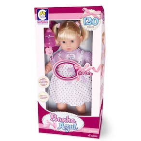 INFORMAÇÕES: - Produto: Boneca Com Cabelo Sonho Azul Fala Frases - Marca: Cotiplás - Coleção: Sonho Azul - Tipo: Boneca Bebê Interativa - Tamanho: 56 cm - Recomendação: para crianças a partir de 03 anos de idade