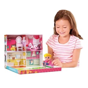 Bem vinda a casinha da Bee Hugs! Sua embalagem vira uma casinha com 4 lindos ambientes e mais um lindo jardim com banquinho para você brincar e curtir a natureza. Vem com penteadeira e um cavalinho de balanço super fofo. Sinta-se em casa com essa linda coleção!