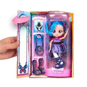 Shannon é vestida de acordo com seu talento, refletindo seu estilo vibrante e criativo. Com cabelos longos e estilizáveis, olhos de vidro realistas e corpo articulado, Shannon oferece uma experiência de brincadeira dinâmica e personalizada.