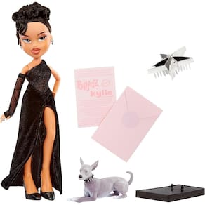 Duas forças da cultura pop se unem quando Kylie Jenner entra no mundo das Bratz! O ícone da moda e empreendedora foi “Bratzificada” na primeira colaboração de celebridades Bratz Esta boneca Kylie Jenner Bratz ostenta um look noturno usando um vestido vintage de um ombro só, manga única, textura glam de Hollywood, com fenda ultra-alta Seu amado galgo italiano Norman também se juntou a ela em sua saída à noite, esculpido em uma pose elegante com detalhes flocados e uma coleira cravejada Kylie também vem com brincos em formato de cabeça de cobra e um anel combinando, uma escova de cabelo em forma de estrela prateada metálica, suporte para boneca, pôster e certificado de autenticidade Esta boneca Kylie também tem um penteado elaborado com franjas drapeadas e um lindo look de maquiagem personalizado Ela pode fazer muitas poses com 11 pontos de articulação! A boneca Bratz x Kylie Jenner Night vem em um novo e exclusivo formato de caixa Bratz com um top trapezoidal torcido e rosa bebê por toda parte Colecione as bonecas Day e Night Bratz x Kylie Jenner