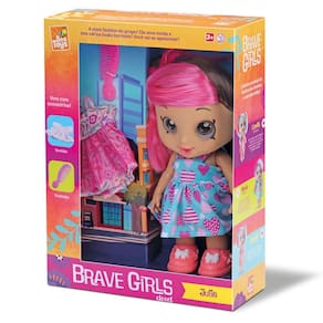 A Boneca Brave Girls Julie é uma boneca em vinil macio com cabelos rosa e penteados modernos, olhos com glitter e maquiagem. Ela vem com um acessório de beleza e um lindo vestidinho para poder brincar e fantasiar. Essa boneca é uma ótima opção para crianças que gostam de brincar e cuidar de seus bebês, usar a imaginação e se surpreender com novidades.