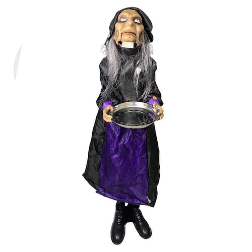 Boneca bruxa horripilante som luz movimento halloween ydh dê um toque de diversão sinistra à sua decoração de halloween com a adição do nosso incrível mordomo de halloween com bandeja este boneco impressionante tem 130cm de altura, e sua construção em plástico rígido garante durabilidade e cores vivas que não desbotam facilmente. O que torna este garçom de halloween verdadeiramente especial é a sua interatividade assombrosa. Equipado com um sensor de movimento na bandeja de metal, ele responde ao toque com movimentos da cabeça e da boca, enquanto emite sons arrepiantes e até ilumina os olhos com uma luz misteriosa. Imagine a reação dos seus convidados quando se depararem com essa figura intrigante, envolvendo todos com seu charme peculiar. Seja o anfitrião mais memorável deste halloween, surpreendendo todos com uma decoração única que combina sustos e diversão. Prepare-se para uma festa verdadeiramente inesquecível e adicione um toque de mistério e humor com nossa bruxa halloween. Adquira o seu agora e transforme sua celebração em um evento de arrepiar características: - marca: ydh; - com luz nos olhos e a mandíbula que se move quando a bruxa fala; - dimensões aproximadas: 1,30m de altura, 32cm de largura e 30cm de comprimento; - com bandeja de doces, surpreenda seus convidados; - material: plástico/ poliéster; - funciona com três pilhas aa não inclusas e botão liga/desliga; -imagens meramente ilustrativas- atenção: a cor do produto pode variar de acordo com o monitor atenção: o fabricante pode alterar a cor de alguma parte do produto sem aviso prévio.