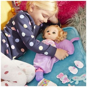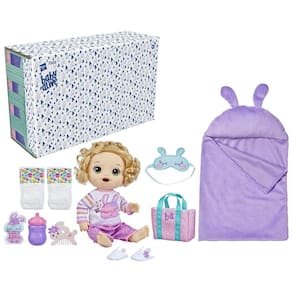 Com a boneca Baby Alive Bunny Sleepover Baby, as crianças podem se divertir com uma festa do pijama imaginária. A boneca de 30 cm vem com diversos acessórios, como um saco de dormir rosa com tema de coelho, uma máscara para os olhos, um coelhinho de pelúcia, chinelos, uma mamadeira, duas fraldas e um pente. Ela é capaz de beber água pela mamadeira e molhar a fralda, o que torna a brincadeira ainda mais realista. O conjunto vem em uma embalagem temática de berço, que é divertida de desembalar e torna o produto um ótimo presente para meninos e meninas de 3 anos ou mais. A boneca apresenta pijamas de 2 peças com tema de coelho, pantufas de coelhinho e uma máscara para os olhos, tudo muito fofo e confortável. A boneca Baby Alive Bunny Sleepover Baby é um playset de figura de brinquedo e é uma marca registrada da Hasbro.