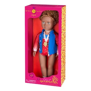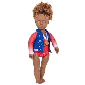 Boneca de ginástica de 46cm da Our Generation. Alcance seus sonhos com Nya, uma talentosa ginasta! Ela tem olhos cinzas únicos que abrem e fecham, e seu cabelo castanho longo e cacheado é divertido de escovar e pentear! Nya pode girar o pescoço, braços e pernas para realizar sua rotina de ginástica na frente da multidão. Ela está pronta para ganhar a medalha de ouro! Ela veste collant estrelado com jaqueta com zíper enquanto caminha para o grande palco. Em seguida, coloca o par de meias de ginástica para dar uma melhor aderência ao chão. Sua roupa possui fechos fáceis de abrir para colocar e remover rapidamente, para que Nya possa mudar para outras roupas coloridas (vestidas separadamente) para comemorar com seus amigos após a competição.