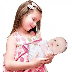 A Boneca Cheirinho de Bebê da Cotiplás é perfeita para a criança que adora brincar de boneca. Ela é linda, delicada, com traços que parecem um bebê de verdade e vem com um cheirinho de neném que vai encantar as pequenas mamães. A boneca acompanha uma linda roupinha um lacinho de fita na cabeça.