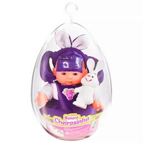 Uma linda boneca com cheirinho de fruta, maria-chiquinha e orelhinhas de coelho. A Boneca Cheirosinha possui o corpo macio e cabelos de verdade para tornar a brincadeira ainda mais real e, para completar a fofura, acompanha um simpático coelho agarradinho. São 6 sabores diferentes para colecionar! Sabores e modelos diversos, sem opção de escolha (valor unitário).