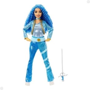 Luta pelo que está certo com esta boneca da Princesa Chloe Charming, Filha da Cinderela, do filme da Disney Descendentes: A Ascensão de Copas! Com os seu cabelo ondulado azul brilhante e a sua roupa icônica, esta boneca fashion parece mesmo a campeã real que é no filme. Ela dobra os braços, cotovelos, pulsos e joelhos para que ela possa arrasar com seu acessório de espada incluído e posar como a princesa heroica que ela é. É um ótimo presente para os fãs que vão querer colecionar todas! Cada uma é vendida separadamente, sujeito à disponibilidade A boneca não pode ficar em pé sozinha. Cores e as decorações podem variar.CARACTERÍSTICAS TÉCNICAS:Conteúdo da Embalagem: 01 Boneca e AcessóriosDimensões Aproximadas do Produto: 28m x 05cm x 13cm (Altura x Largura x Comprimento/Profundidade).Dimensões Aproximadas da Embalagem: 08cm x 23cm x 34cm (Altura x Largura x Comprimento/Profundidade).Material/Composição: Plástico.Idade Mínima Recomendada: A partir de 04 Anos.Participantes: A partir de 1 pessoa.Marca: Mattel.Referência: HWT89.