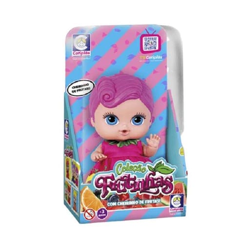 Boneca articulada produzida em vinil com bracinhos injetados. Possui cheirinho de fruta, roupinha de tecido com imagem de fruta e cabelo pintado. Peso: 215 g Dimensões embalagem: Altura: 23.5 Largura: 8 Comprimento: 15 Altura da boneca: 19 cm Material: vinil e tecido Idade recomendada: mais de 3 anos Certificação Inmetro: 0228 Conteúdo: 01 boneca frutinha groselha Referência: 2511 Garantia:3 meses defeito fabricação