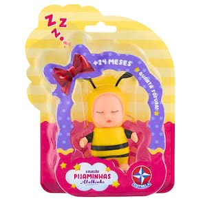 A coleção pijaminha é composta de mini boneca em vinil que vestem pijamas de animais. Raposa, Unicórnio , Abelha, Ursinho, Pintinho e Coala. Elas têm cerva de 8 cm e possuem olhos pintos fechados. As meninas vão adorar!
