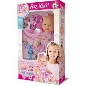 Boneca com Acessórios - 32 cm - Tekinha - Gessinho - Sid-Nyl: as crianças vão se divertir e viver histórias incríveis com a Tekinha. Essa linda boneca bebê precisa de todo o cuidado e amor do mundo. A Boneca Tekinha Gessinho tem cabeça em vinil e pernas, braços produzidos em polietileno. Para deixar a brincadeira mais divertida, a boneca vem acompanhada de acessórios: estetoscópio, seringa, termômetro, ouvinil, tesoura e carteirinha de consulta. Com 32 cm de altura, a Tekinha Gessinho também tem movimentos articulados para fazer poses divertidas durante a encenação. Você vai examinar e tratar do bracinho dessa neném. INFORMAÇÕES: • Produto: Boneca Tekinha Gessinho • Marca: Sid-Nyl Brinquedos • Coleção: Tekinha • Tipo: Boneca com Acessórios • Tamanho (C x A x L): 15 x 32 x 09 cm • Volume (Peso): 0.180 kg • Conteúdo: 1 boneca, 1 estetoscópio, 1 seringa, 1 termômetro, 1 ouvinil, 1 tesoura e 1 carteirinha de consulta • Recomendação: para crianças a partir de 3 anos de idade ESPECIFICAÇÕES: • Referência: 1262 • Código de barras: 7897547712625 • Embalagem (C x A x L): 25 x 43 x 09 • Embalagem (Peso): 0.435 Kg • Composição / Material: - Vinil: cabeça - Polietileno: corpo, pernas e braços - Plástico: acessórios - Tecido: roupinhas • Registro: 006723/2021 • Certificado: Órgãos Autorizados - OCP´S (Organismos de Certificação de Produtos) BENEFÍCIOS DE BRINCAR: - Eleva a autoestima - Exercita a memória - Estimula o raciocínio - Exercita o imaginário - Desenvolve a criatividade - Desenvolve percepção visual - Desperta a atenção e curiosidade - Desenvolvimento neuropsicológico - Estimula habilidades motoras básicas - Incentiva a comunicação e linguagem - Desenvolve aspectos emocionais e afetivo - Estimula o reconhecimento de formas e cores AVISO: - As imagens são meramente ilustrativas - Os tamanhos e medidas são aproximados - As cores e estampas dos produtos podem ter variações - As informações são de responsabilidade do fabricante ou fornecedor