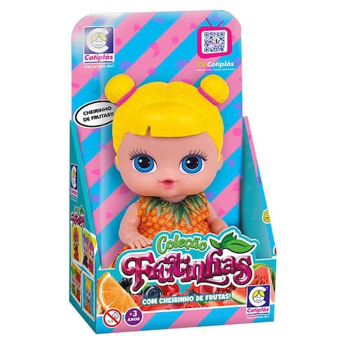 Boneca com Cheirinho - 18 cm - Frutinhas - Abacaxi - Cotiplás: a nova Boneca Abacaxi da Coleção Frutinhas está mais linda e cheirosa do que nunca. Essa linda bonequinha produzida em vinil macio com essência de Abacaxi, está com uma aparência encantadora e vestidinho temático. Toda delicadinha, ela vem com uma roupinha que combina com sua fruta. As pequenas vão se divertir colecionando cada boneca da Coleção Frutinhas. Uma mais linda do que a outra. INFORMAÇÕES: • Produto: Boneca Frutinha Abacaxi • Marca: Cotiplás • Coleção: Frutinhas • Tipo: Boneca com cheirinho de frutas • Categoria: Bonecas e Cia • Tamanho: 18 cm (A) • Conteúdo: 1 boneca • Recomendação: para crianças a partir de 3 anos de idade ESPECIFICAÇÕES: • Referência: 2509 • Código de Barras: 7896964625099 • Embalagem (C x A x L): 14.5 x 23.5 x 8.5 cm • Embalagem (Peso): 0.225 Kg • Composição / Material: Boneca: vinil com essência Roupinha: tecido • Registro: CE-BRI/IQB 0228 IQB-OCP 006 • Certificado: Órgãos Autorizados - OCP´S (Organismos de Certificação de Produtos) BENEFÍCIOS DE BRINCAR: - Eleva a autoestima - Exercita a memória - Estimula o raciocínio - Exercita o imaginário - Desenvolve a criatividade - Desenvolve percepção visual - Desperta a atenção e curiosidade - Desenvolvimento neuropsicológico - Estimula habilidades motoras básicas - Incentiva a comunicação e linguagem - Desenvolve aspectos emocionais e afetivo - Estimula o reconhecimento de formas e cores AVISO: - As imagens são meramente ilustrativas - Os tamanhos e medidas são aproximados - As cores e estampas dos produtos podem ter variações - As informações são de responsabilidade do fabricante ou fornecedor