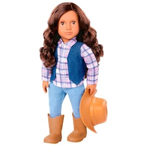 A boneca Cowgirl Carolyn da Our Generation é a companheira perfeita para pequenas aventureiras que sonham com a vida no campo e o estilo western. Com 46 cm de altura, Carolyn encanta com seus olhos castanho-claro que abrem e fecham e seu cabelo castanho-escuro ondulado, que pode ser penteado de diversas formas criativas. Seu corpo macio com cabeça, braços e pernas articulados, permite poses realistas e troca fácil de roupas, estimulando a imaginação e a coordenação motora.
