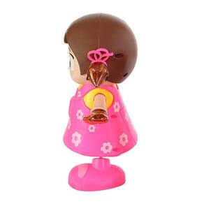 Com uma simples ativação, ela ganha vida, movendo-se para um lado e para o outro com elegância ao som de uma música alegre, as luzes coloridas em suas mãos e cabelo piscando traz ainda mais diversão ao ambiente proporcionando um visual encantador a boneca.