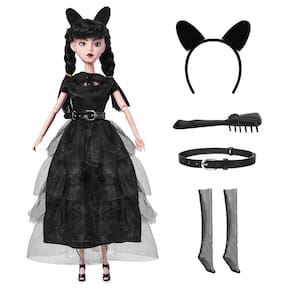 - Icônica e clássica: leve para casa o assustador e assustador com esta boneca preta feminina de 11,5 polegadas, vestida com sua saia preta exclusiva e salto alto preto. Imprescindível para qualquer fã de Family
