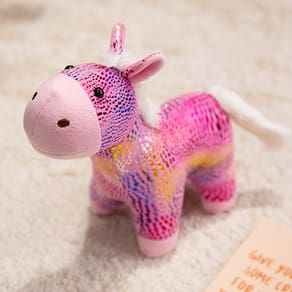 Material: pelúcia Tamanho: 22 cm Peso: 150 g Vibrant Sparkling Pony — Apresenta um padrão cintilante exclusivo em forma de arco-íris com detalhes em rosa suave e crina e cauda brancas fofas. Material macio e recheado — Feito de tecido de pelúcia de alta qualidade, proporcionando uma sensação suave e aconchegante que é segura para crianças. Mascote Zodiac Horse — Colecionável perfeito para comemorar o Ano do Cavalo ou adicionar um toque divertido à decoração da casa. Compacto e decorativo — com 22 cm de tamanho, ideal para mesas, prateleiras ou como um companheiro fofo para crianças e amantes de pôneis. Design em estilo de desenho animado — Uma figura de pelúcia criativa que combina charme de desenho animado com uma forma realista de cavalo para uma exibição versátil.