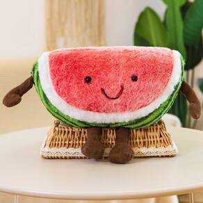 Material: pelúcia Tamanho: 50 cm Design fofo de melancia — apresenta uma fatia de melancia vermelha brilhante com um adorável rosto sorridente, braços e pernas pequenos para dar mais personalidade e charme. Macio e não agride a pele — Feito de tecido de pelúcia premium com recheio macio, oferecendo uma textura aconchegante, suave e abraçável, adequada para todas as idades. Uso multifuncional — funciona como uma boneca de frutas de pelúcia, travesseiro decorativo, almofada de sofá ou travesseiro para quartos, dormitórios e salas de estar. Tamanho perfeito e leve — 50 cm de tamanho e fácil de transportar ou mover, o que o torna uma decoração versátil ou uma companheira reconfortante. Durável e fácil de cuidar — A costura de alta qualidade mantém sua forma e maciez para uso a longo prazo, com limpeza simples da superfície para maior comodidade.