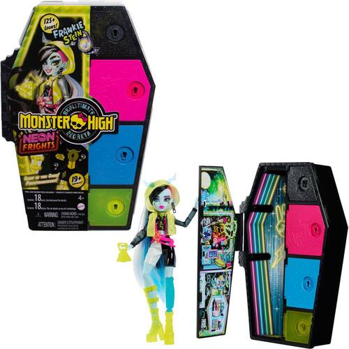 Skulltimate Secrets está de volta e brilhando como nunca antes. Abra o armário da boneca Frankie Stein para descobrir Neon Frights, como surpresas de moda e acessórios eletrizantes.