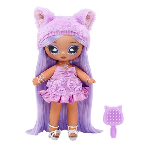 Na! Na! Na! Surprise Sweetest Gems™ Valentina adorável boneca fashion de 19 cm ametista com pedra do mês de nascimento inspirada em cabelo roxo, vestido de cetim e escova, articulável, ótimo presente