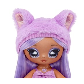 - O que está incluído: boneca fashion de 19 cm, gorro felpudo, vestido, sapatos e um pincel moldado. O gorro não é removível.