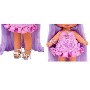 - Bonita boneca de cabelo roxo: Valentina Lovely tem um lindo cabelo roxo penteado liso com uma parte lateral. Use a escova incluída para pentear o cabelo dela repetidamente!