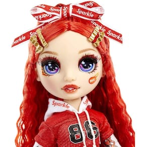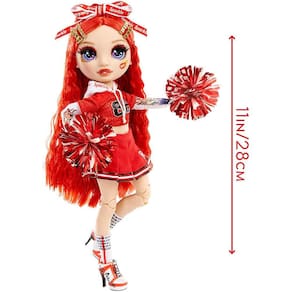 PRODUTO INTERNACIONAL. Se você adora moda e diversão, vai se apaixonar pelas bonecas Rainbow High Cheer! A Ruby Anderson é líder de torcida e seu look esportivo é incrível, com detalhes chiques. Com cílios longos e cabelos lindos, ela é totalmente posável e vem com pom poms para torcer em grande estilo. Além disso, seu cabelo pode ser lavado e estilizado facilmente.