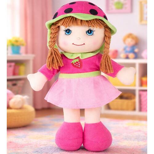 Uma bonequinha de pano cheia de doçura e encanto Com seu toque macio e uma roupinha delicada, a Boneca Morango conquista corações e transforma qualquer momento em pura imaginação. Perfeita para estimular o carinho, a criatividade e criar histórias cheias de fantasia. Um pedacinho de afeto em forma de brinquedo!