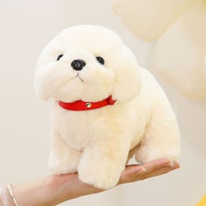 Material: pelúcia Tamanho: 25 cm. Aparência realista de cachorrinho Bichon — Projetado para imitar a aparência de um cachorro Bichon sentado, com pelo branco macio, olhos pretos e coleira vermelha brilhante para adicionar detalhes. Tecido de pelúcia premium — Feito de materiais de pelúcia ultramacios e amigáveis à pele, com um recheio macio que o torna aconchegante e abraçável. Tamanho perfeito para abraçar — mede aproximadamente 25 cm, o que o torna ideal para se aconchegar durante os cochilos ou como companheiro na hora de dormir. Elemento de decoração adorável — adiciona uma presença fofa e relaxante a camas, sofás, salas de jogos ou creches. Seguro para crianças — Costura durável e pelúcia não tóxica de alta qualidade garantem brincadeiras duradouras e conforto para crianças de todas as idades.