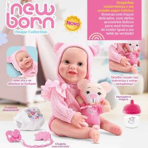 Boneca de Vinil - Diver New Born Unique - Body Rosa - Divertoys: essa linda boneca de 36 cm é um encanto. Com traços delicados, roupinhas moderninhas e um ursinho super fofinho! A Boneca vem com vários acessórios lúdicos para você brincar de cuidar igual a um bebê de verdade. Detalhes • Produzida toda em vinil e 36 cm aproximadamente • Com traços delicados • Acompanha mamadeira mágica, chupeta com corrente, fralda descartável e ursinho fofinho. • Com Traços delicados e roupinhas moderninhas • Ela também fecha os olhinhos quando deitada • Detalhe rosado nas dobrinhas e unhas pintadinhas Informações: • Produto: Boneca New Born Unique Body Rosa • Marca: Divertoys • Coleção: Diver New Born Unique Collection • Tipo: Boneca com Acessórios • Categoria: Boneca Bebê com Acessórios • Tamanho: Boneca 36 cm (altura) • Conteúdo: - 01 boneca - 01 ursinho - 01 mamadeira mágica - 01 chupeta - 01 fraldinha • Recomendação: para crianças a partir de 03 anos de idade Especificações: • Referência: 8205 • Código de Barras: 7898639382054 • Embalagem (C x A x L): 40 x 27 x 14.5 cm • Embalagem (Peso): 0.816 kg • Material / Composição: - Boneca: toda em vinil macio - Roupinha: tecido - Acessórios: plástico (PP) • Registro: 002405/2022 • Certificado: Órgãos Autorizados - OCP´S (Organismos de Certificação de Produtos) Aviso: • As imagens são meramente ilustrativas • Os pesos, tamanhos e medidas são aproximados • As cores e estampas dos produtos podem ter variações • As informações são de responsabilidade do fabricante ou fornecedor Ean: 7898639382054