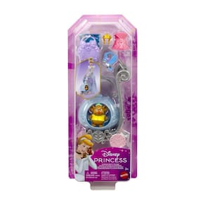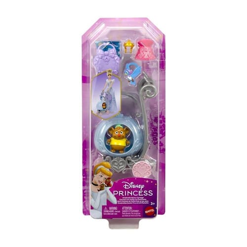 Cada carruagem vem com rodinhas e é inspirada em uma boneca das Princesas Disney (vendida separadamente)