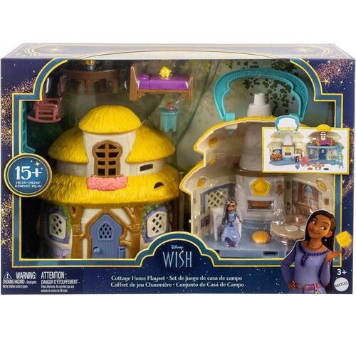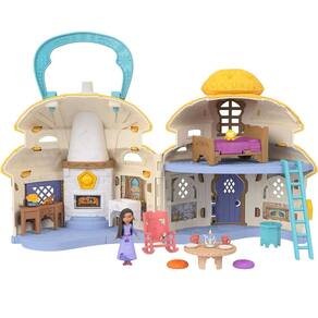 Descubra a magia e a diversão do conjunto de casa de bonecas da Disney's Wish com Asha of Rosas Cottage Home com uma mini boneca e mais de 15 acessórios, Inspirado no local do filme, pressione o botão Star Reveals para abrir o playset portátil e revelar a casa de campo de 2 andares que Asha chama de lar, os toques mágicos incluem a lareira que se transforma para mostrar uma panela quando o botão Star Reveals acima é pressionado, as crianças podem decorar a casa com 17 peças para contar histórias, incluindo móveis como uma cama e cadeira de balanço, para reproduzir as cenas favoritas do musical animado, uma alça torna o brinquedo um sonho para viajar, destacando a magia do desejo, os conjuntos e bonecas Disney Wish são um brinquedo inspirador para crianças a partir de 3 anos de idade para brincar com seus maiores sonhos.