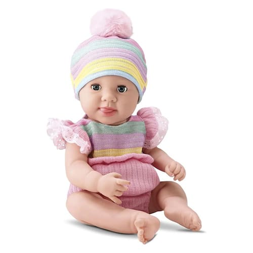 Com sua fisionomia detalhada e a linguinha adorável para fora, ela se assemelha a um bebê real, tornando cada momento de brincadeira ainda mais autêntico. A boneca faz parte de uma coleção sofisticada, vestida com roupinhas chiques que imitam tricô de verdade, incluindo uma touca e um body encantadores.