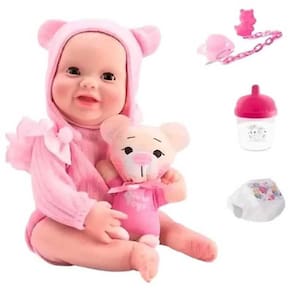 A Brincadeira vai ficar ainda mais divertida com a Boneca New Born Unique da Divertoys, que acompanha mamadeira mágica, chupeta com corrente, fralda descartável e Ursinho fofinho. Com Traços delicados e roupinhas moderninhas, a Boneca vem com vários acessórios lúdicos para você brincar de cuidar igual a um bebê de verdade. Ela também fecha os olhinhos quando deitada. Ideal para estimular a interação entre pais e filhos, criatividade e imaginação da criança.