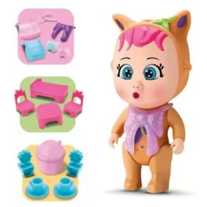 Diver surprise bolsinha - mama E chora Bonequinhas em vinil ( emborrachada) coloridas nas versões surpresa: unicórnio, raposinha, coelhinha ou coala (vem surpresa) Vem dentro de uma linda Bolsinha em modelo unicórnio em Material Termoplástico colorido com glitter envolvida no sleeven Surpresa. Interatividade do produto: Coloque água na mamadeira, dê para a Surprise pela boca e aperte as bochechas, ela solta lágrimas pelos olhos.