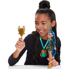 Boneca e acessórios Monster High, estojo de beleza Cleo De Nile Golden Glam com tatuagens, adesivos e colar para crianças — pronto para o santuário. Esta capa Golden Glam inclui uma boneca Monster High e acessórios mumificados para usar e compartilhar, como tatuagens, iluminadores e muito mais. - A boneca Cleo De Nile mostra seu estilo no topo da pirâmide em um vestido estampado em hieróglifos combinado com um colar assustadoramente legal e saltos peep-toe. - O kit de beleza também vem com um colar infantil combinando. Seu pingente de escaravelho se abre para revelar um iluminador cintilante para que as crianças possam adicionar um toque de brilho ao dia. - As crianças podem personalizar sua aparência com as tatuagens corporais de hieróglifos incluídas. Eles vão se divertir muito usando a estética real característica da boneca Cleo De Nile. - Oh, meu Rah... o estojo de sarcófago esculpido em forma de bota pode ser exibido por si só. Tudo cabe no interior para facilitar o armazenamento e a viagem: a boneca, seu espelho portátil ornamentado e todos os seus tesouros de beleza. - A capa Cleo De Nile Golden Glam reúne criatividade e diversão de estilo em um conjunto deslumbrante. Confira outros bonecos e conjuntos de brinquedos Monster High para mais presentes assustadores.
