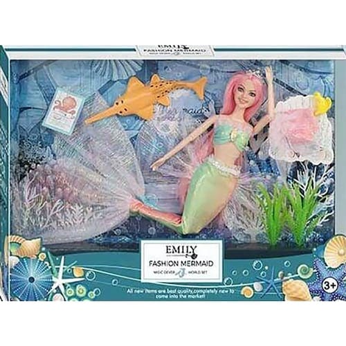 1 Boneca Emily Sereia Fashion Mermaid Cabelo Rosa QJ137C - Dorémi