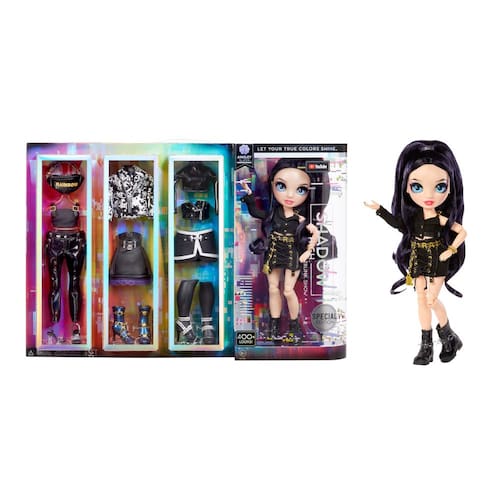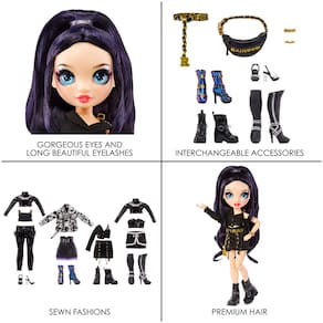 Rainbow High Trunk Show-Ainsley — Ainsley Fashion Doll — Crie mais de 400 looks com mais de 20 peças, incluindo mais de 10 peças de moda e 4 pares de sapatos. - Moda extra usável para bonecas (4 conjuntos) e cabides - Acessórios de moda (pulseira, bolsa, sapatos...) - Cabelo e pente de cabelo longos e lindos