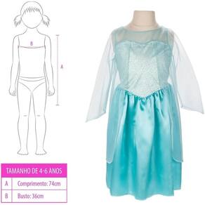 -Fantasia infantil inclusa ? vestido tamanho único (74cm de comprimento e 36cm de busto), ideal para crianças de 4 a 6 anos, trazendo a magia de se vestir como uma princesa.