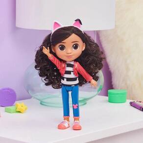Ao brincar de boneca ou boneco, a imaginação infantil é instantaneamente ativada, pois a brincadeira não vem pronta, então a criança precisa inventar situações, criar as cenas, pensar nos comportamentos e sentimentos da boneca, e reagir a isso. A Boneca Gabby Girl, da série infantil autêntico Netflix, A Casa Mágica da Gabby (ou Gabby's Dollhouse) é um modelo articulada, com detalhes realistas da cabeça aos pés, e 19,5 centímetros de pura diversão! Gabby Girl usa sua roupa clássica do show, incluindo tênis, jeans com um patch de gatinho, um top de tecido e sua tiara de orelhas de gato de assinatura! Acompanha sua tiara com orelhas de gato removível e ela ainda tem cabelo macio e encaracolado que você pode pentear. Com seu visual verdadeiro, esta boneca infantil é a companhia perfeita para contar suas próprias histórias emocionantes em casa.