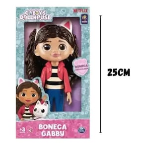 Boneca Vinil Gabby da Serie Gabbys Dollhouse Netflix Mimo Mergulhe no mundo mágico de Gabby com a Boneca Gabbys Dollhouse em Vinil! Com 25cm de altura, esta boneca captura toda a essência da série, prometendo encantar Perfeita para brincadeiras criativas ou para decorar o quarto Traga a magia para casa!