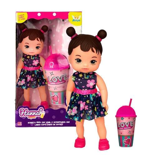 Boneca Hannah Suquinho Com Copo A boneca Hannah suquinho com copo é uma linda boneca feita 100% vinil atóxico. Muito macia e gostosa de abraçar com um vestidinho que é uma fofura, olhos colados e com um cheirinho delicioso. E além disso -Acompanha um lindo Copo com canudo para a criança tomar suco, refrigerante ou água. Desperte a criatividade e a imaginação da sua criança -Recomendada para maiores de 03 anos ESPECIFICAÇÕES:Material: Polietileno, Vinil e Roupa em TecidoDimensões:Boneca: Alt.: 30cm x Larg.: 11cmCopo: Alt.: 23cm x Diâmetro 9cm Peso:Boneca: Aprox. 260gCopo: Aprox. 51g Registro Inmetro: CE-BRI/IQB 4115 NM 300/2002 Contém:Boneca Hannah Suquinho Com Copo Marca: ANJO TOYS