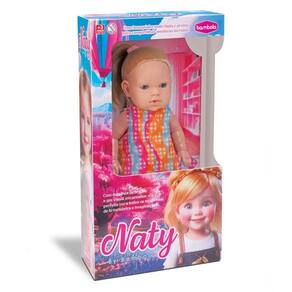 Boneca Naty Com Cabelo Loiro Conheça a encantadora Raissa que traz consigo toda a magia de brincar. Vestida com um vestido delicado, ela é muito linda! Cada detalhe de sua roupa reflete a beleza. Venha explorar um mundo de sonhos e imaginação! Informações: - Ref.: 959 - Marca: Bambola - Modelo: Boneca Naty Com Cabelo - Material: Prolipropileno, Vinil e Tecido - Material Corpo: Vinil - Tamanho ideal para brincadeiras de cuidado - Código de barras (EAN): 7899871709593 - Altura Aproximada: 34 cm - Certificação: 7789-2023-BRI-1M - Recomendado para crianças maiores de 03 anos de idade. Conteúdo da Embalagem: - 1 Boneca Uma ótima opção para incentivar a imaginação, responsabilidade e carinho das crianças.