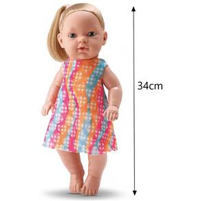 Boneca Infantil Naty Cabelo Loira Baby Bambola Vestido 34cm