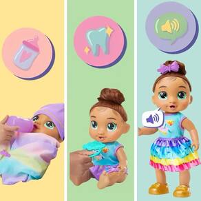 Crie momentos interativos com Sophia Sparkle, a boneca Baby Alive que cresce igual a um bebê de verdade. São 3 fases para as crianças curtirem a “infância” dessa bebê super fofa. Uma bebê para amar e cuidar com todo o carinho.