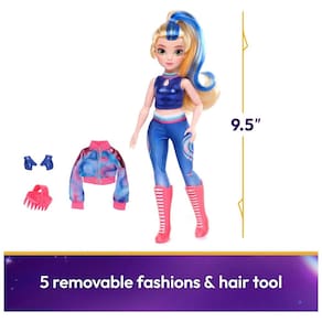 A boneca Isabel inclui 1 boneca, 5 peças de moda removíveis e 1 ferramenta de modelagem de cabelo.