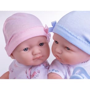 Gêmeos de vinil laváveis JC Toys Berenguer Boutique Realistic La Newborn de 12,5 polegadas | Conjunto de presente temático azul e rosa com fraldas reutilizáveis, bonés, camisas, chupeta, mamadeiras e certidão de nascimento