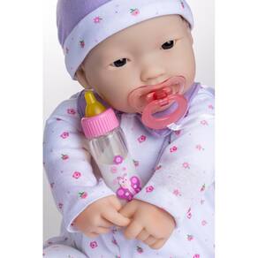 JC Toys - La Baby | Boneca asiática de 50,8 cm de corpo macio | Lavável | Roupa roxa removível com chapéu e chupeta | Para crianças a partir de 2 anos