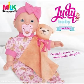BONECA JUDY BABY NANINHA DE URSO E CHUPETAA Boneca Judy Baby Naninha é a companhia perfeita para o soninho e os momentos de carinho!Ela é macia, delicada e acolhedora, rica em detalhes com traços suaves que vão encantar você! Com aproximadamente 34 cm de altura, super fofinha, perfeita para abraçar, apertar e levar para todos os lugares, tornando-se rapidamente a melhor amiga.Vem com uma naninha super fofa de urso e uma chupeta.Ela é mais do que uma boneca: é um estímulo para o afeto, o cuidado e a imaginação.Companhia para o Soninho: Acompanha uma naninha de urso que ajuda a acalmar e relaxar na hora de dormir.Toque de Carinho: Seu corpo macio e rosto delicado transmitem tranquilidade para a criança.Estímulo ao Desenvolvimento: Promove o cuidado, o afeto e a criatividade através do faz de conta.Especificações Técnicas:Referência: 786Fabricação: Milk BrinquedosMaterial: Vinil Macio, Tecido.Idade Recomendada: A partir de 03 AnosConteúdo da Embalagem: 01 Boneca, 01 Chupeta, 01 Naninha de UrsoMedida Aproximada da Embalagem (A x L x C): 44 x 10 x 30cmAltura Aproximada da Boneca: 34 cm Marca: Não Informado